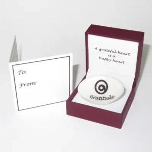 The Gift of Gratitude is a simple gift box, much like a jewelry box, but instead of holding expensive jewelry it carries a Gratitude Stone to convey a deeper message: you are appreciated and you matter to me.